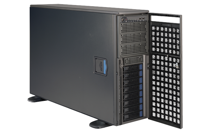 支持 8 块 3.5 寸热插拔硬盘,默认支持 4 个 NVMe(最高支持 8 个 NVMe);