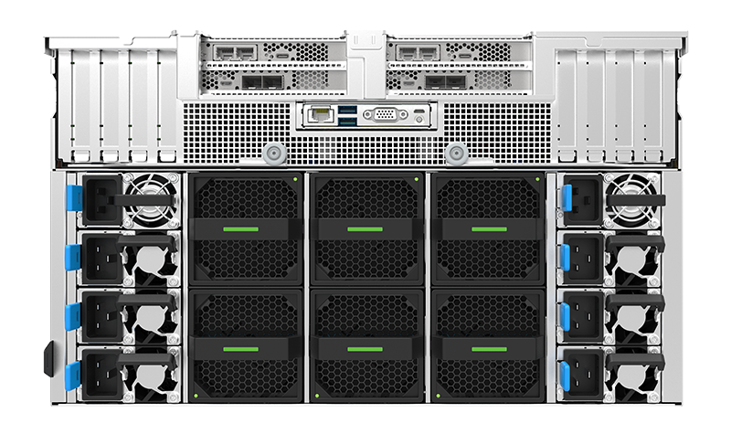 在6U的机箱中支持NVIDIA H800 HGX-8 GPU模块;